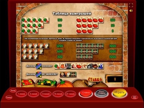 Игровой автомат Базар – это типичный видеослот с 5 игровыми барабанами. Формировать ставки разрешается на 1, 5, 9, 15 и 21 активных полосах.