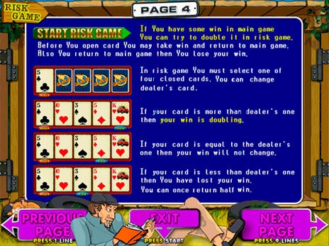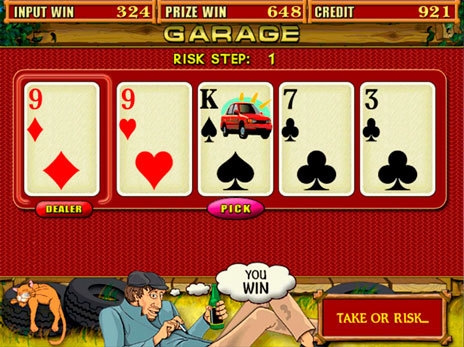 После удачного спина, в результате которого клиенту начисляется денежный приз, пользователю предоставляется шанс удвоить выплату. Суть рискованного тура заключается в том, что на экране появляются 5 игральных карт. Одна из них принадлежит дилеру. Оставшиеся 4 игральные карты предоставляются выбору клиенту. Если удача повернется к пользователю лицом, то ему удастся вытащить карту выше, чем у торговца. В случае везения – денежный приз игрока автоматически удваивается. Если карта дилера окажется выше карты клиента казино, то выигрыш за последний удачный спин сгорает. А пользователь возвращается в обычный игровой режим, и продолжает вращать барабаны.
