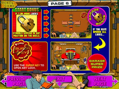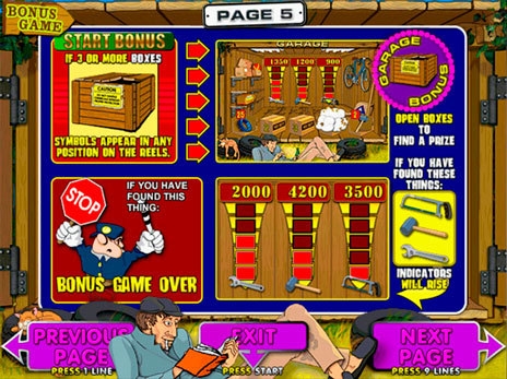 Суть призового раунда состоит в том, что главный персонаж автомата оказывается в гараже, а перед ним появляются 5 ящиков из картона. На каждом ящике размещена надпись «Секрет». В коробках спрятаны различные награды и вознаграждения. Гаражные принадлежности приносят пользователю приятные призы. Под одной из коробок сидит гаишник. Если клиент попадает в его руки, то бонусный тур автоматически останавливается. А пользователь продолжает вращать игровые барабаны. Все заработанные средства сохраняются и переводятся на кредитный баланс клиента онлайн казино.