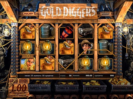 Gold Diggers – это видео слот в 3D формате. По этой характеристике с ним не могут сравниться такие автоматы как Косатка, Комната сокровищ, Волшебные деньги и прочие.