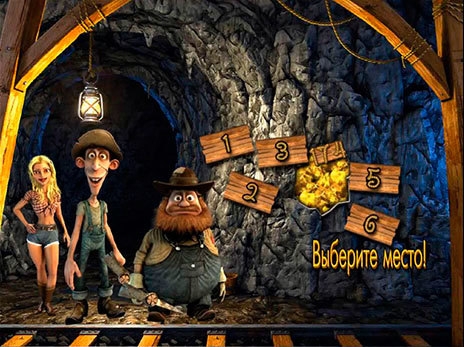 Оформление игрового экрана соответствует заданной тематике. Здесь на фоне шахты, среди вагонеток и инструментов, и проходит охота за золотом.