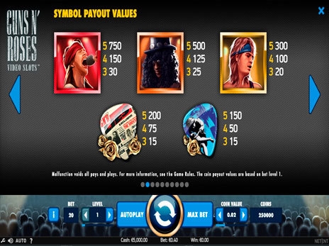 Особенно популярными в азартных кругах считаются автоматы, тематика которых посвящена ярким и запоминающимся личностям. Видео слот Guns N’ Roses разработчики посвятили легендарной группе музыкантов, которые исполняли хиты настоящего рока.