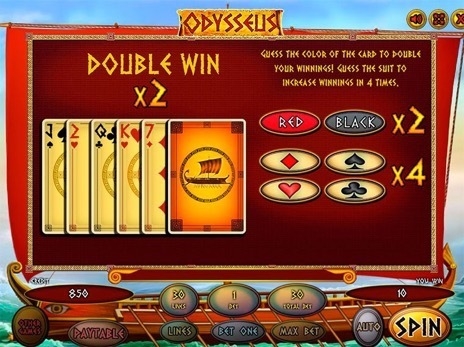 В видео слоте Одиссей для рисковых игроков предоставляется возможность увеличить свой выигрыш вдвое. Для этого им предлагается поучаствовать в риск игре или, как ее еще называют, игре на шансы. Здесь можно умножить свой выигрыш в 2 или в 4 раза.
